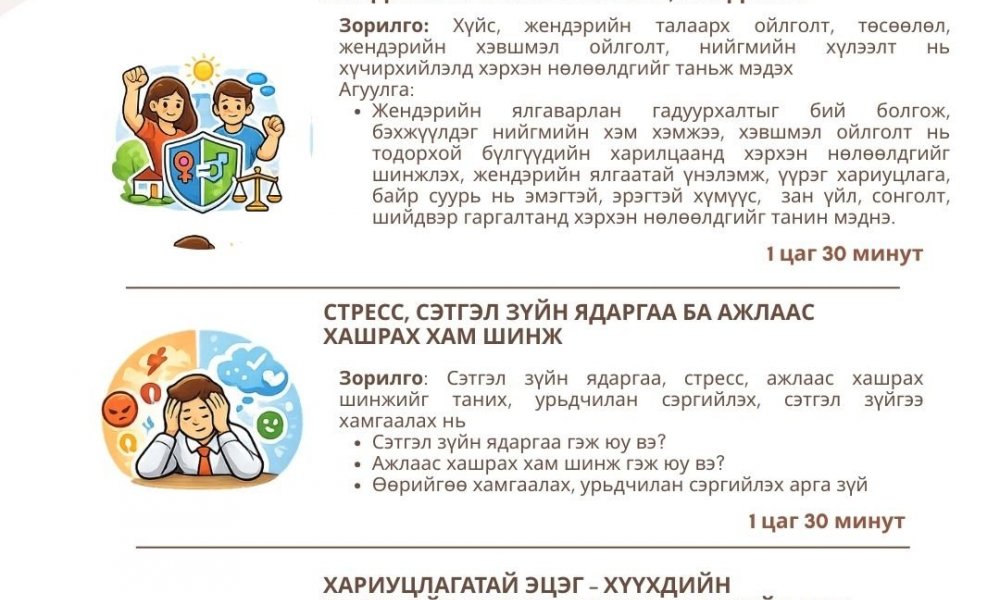 Гэр бүлийн хүчирхийлэлтэй тэмцэх тухай хуулийн 44 дүгээр зүйлийн 44.4 дэх хэсэг болон Хууль зүй, дотоод хэргийн сайдын 2017 оны А/73 дугаар тушаалаар батлагдсан “Зан үйлд нөлөөлөх албадан сургалтын хөтөлбөр, журам”-ын хэрэгжилтийн бодит нөхцөл байдал, үр дүнг үнэлэх, цаашид боловсронгуй болгоход нөлөөлөх зорилготойгоор манай төвөөс тус сургалтыг хэрэгжүүлж буй 17 байгууллага, (10 аймаг, 2 дүүрэг) -с мэдээлэл цуглуулсан мониторингийн дүнгээ танилцуулах Зөвлөлдөх уулзалт зохион байгууллаа.